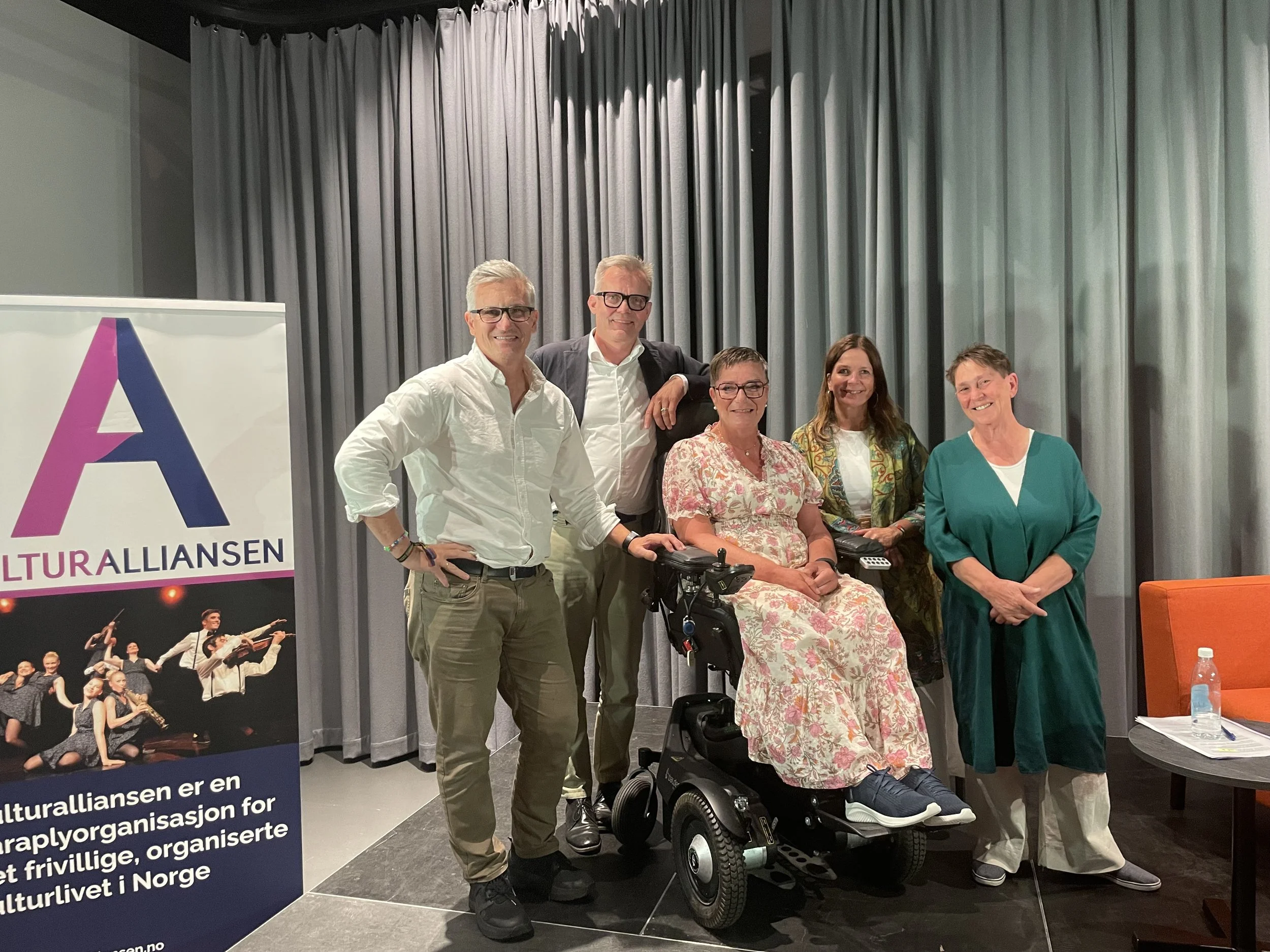 På scenen satt styringsgruppa for Regionale kulturkretser: VOFO, Norsk musikkråd, Kulturvernforbundet, Teaterforbundet Norge og Kulturalliansen.